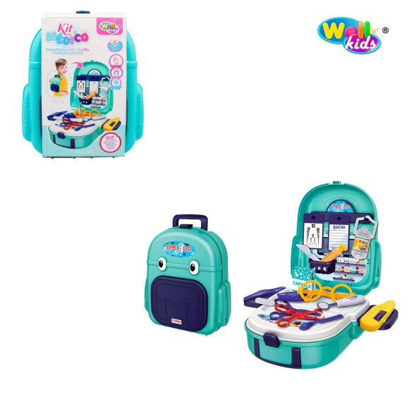 O Kit Médico Mochila WB11895 da Well Kids é ideal para crianças que gostam de brincar de médico e cuidar dos outros. Com uma mochila prática e diversos acessórios médicos, o kit permite que a brincadeira seja levada para qualquer lugar. Produzido com materiais seguros e resistentes, estimula a imaginação, habilidades motoras e promove diversão educativa durante as atividades de faz de conta.