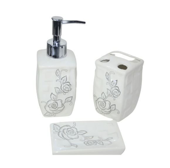 A combinação do design floral com a praticidade de uso torna esse conjunto ideal para quem busca organização e estilo, seja para banheiros pequenos ou grandes. O acabamento cuidadoso e as cores suaves do kit criam um ambiente aconchegante e agradável.