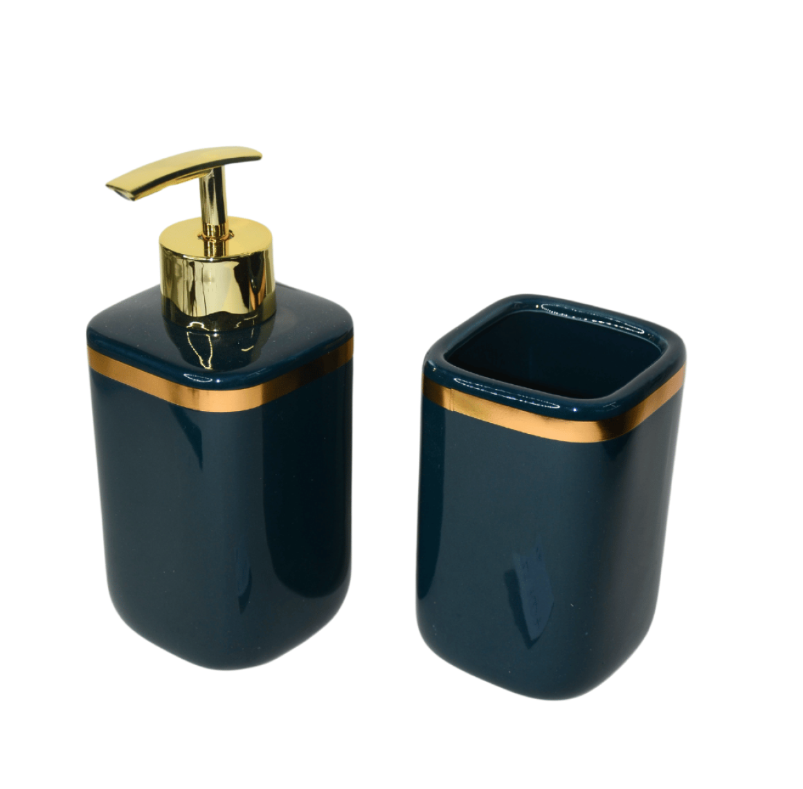 KIT BANHEIRO C/2 PCS MODERNO COM DETALHES DOURADOS