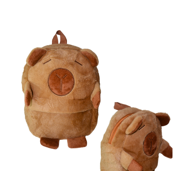 Mochila de Pelúcia com 2 Bolsos - Capivara