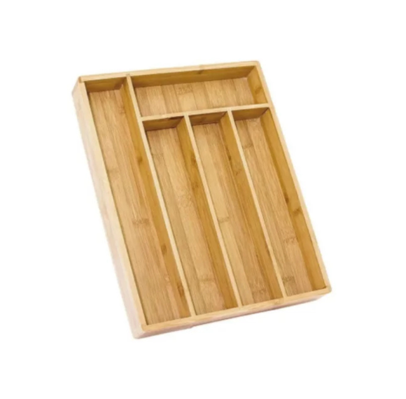 Ideal para gavetas de cozinhas, bancadas, áreas gourmet ou até mesmo para uso em buffets e restaurantes. O Porta-Talheres de Bambu é a união perfeita entre design inteligente e responsabilidade ambiental, trazendo mais harmonia e organização ao seu espaço.