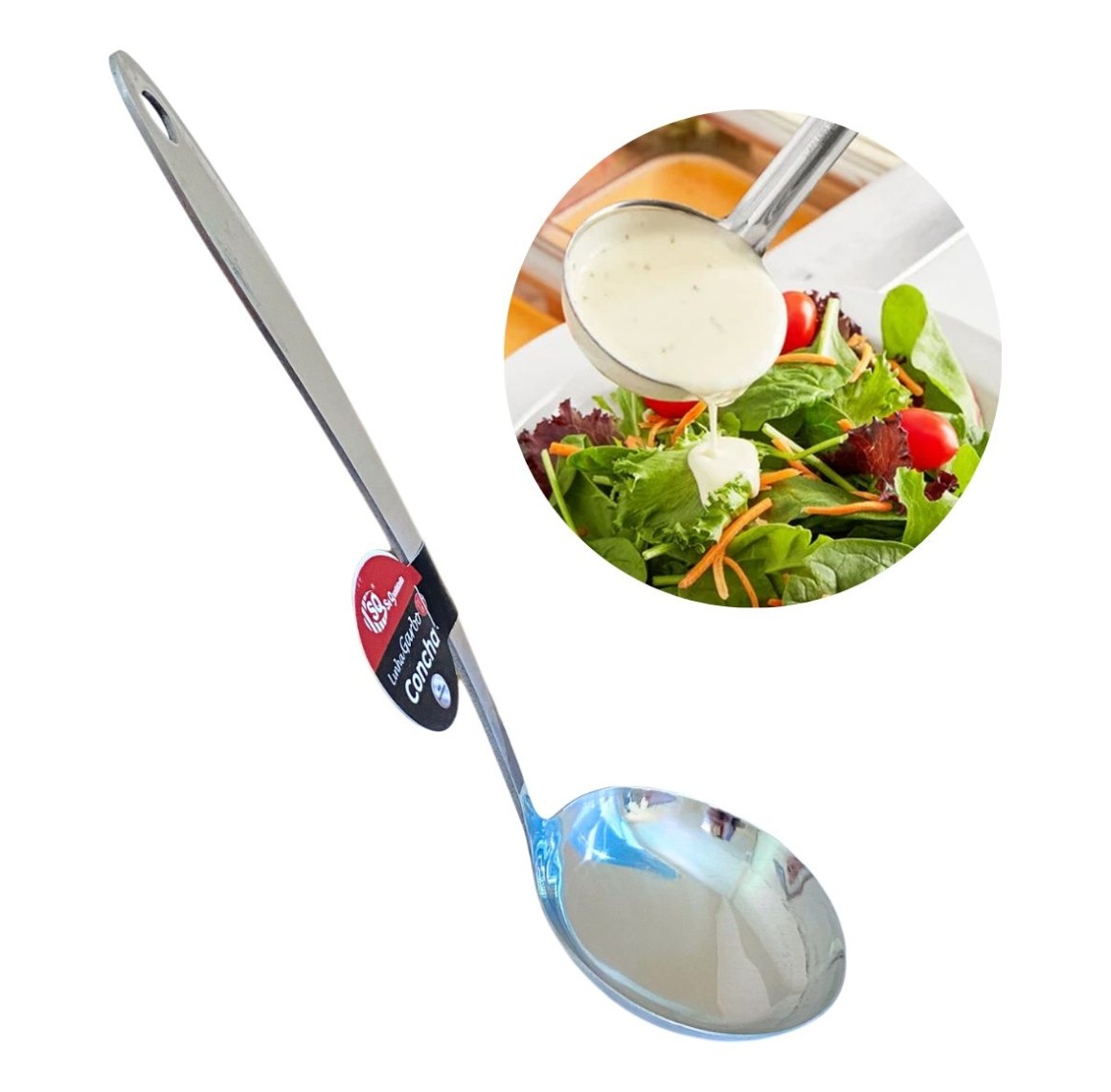 A Concha de Inox G SQ-3190 é perfeita para servir caldos, sopas e molhos com praticidade e elegância. Produzida em aço inoxidável de alta qualidade, oferece resistência, durabilidade e fácil higienização. Seu formato profundo e cabo anatômico garantem firmeza e conforto no uso, sendo ideal tanto para o dia a dia quanto para ocasiões especiais.