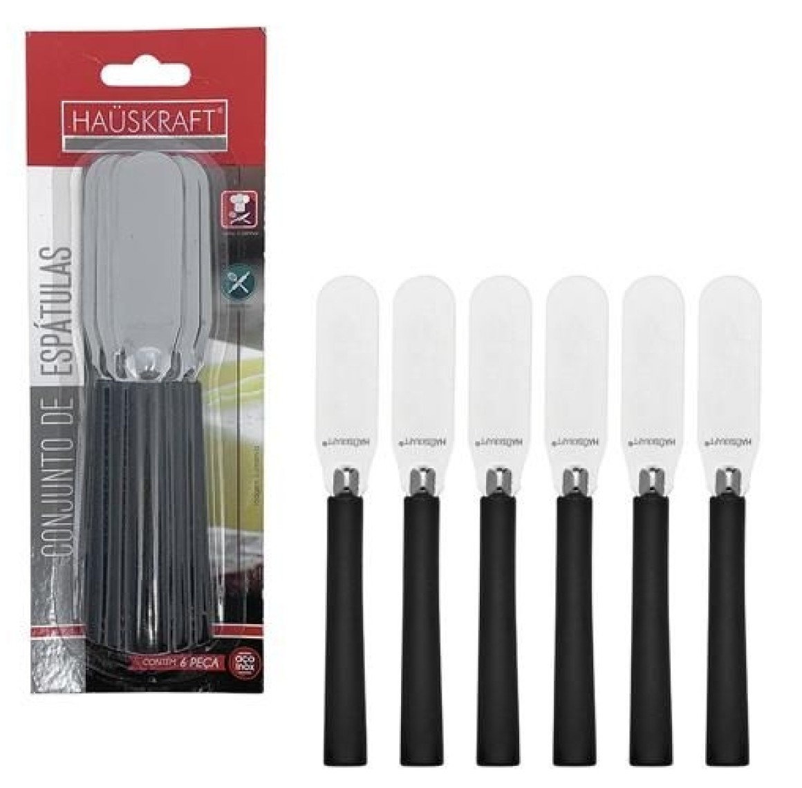 O Conjunto Espátula com 6 peças Preta Inox – CJES-001PT da Hauskraft é ideal para quem busca praticidade, durabilidade e estilo à mesa. Com design moderno e acabamento elegante, as espátulas são perfeitas para servir patês, manteiga, queijos cremosos, geleias e outros acompanhamentos com sofisticação e funcionalidade.