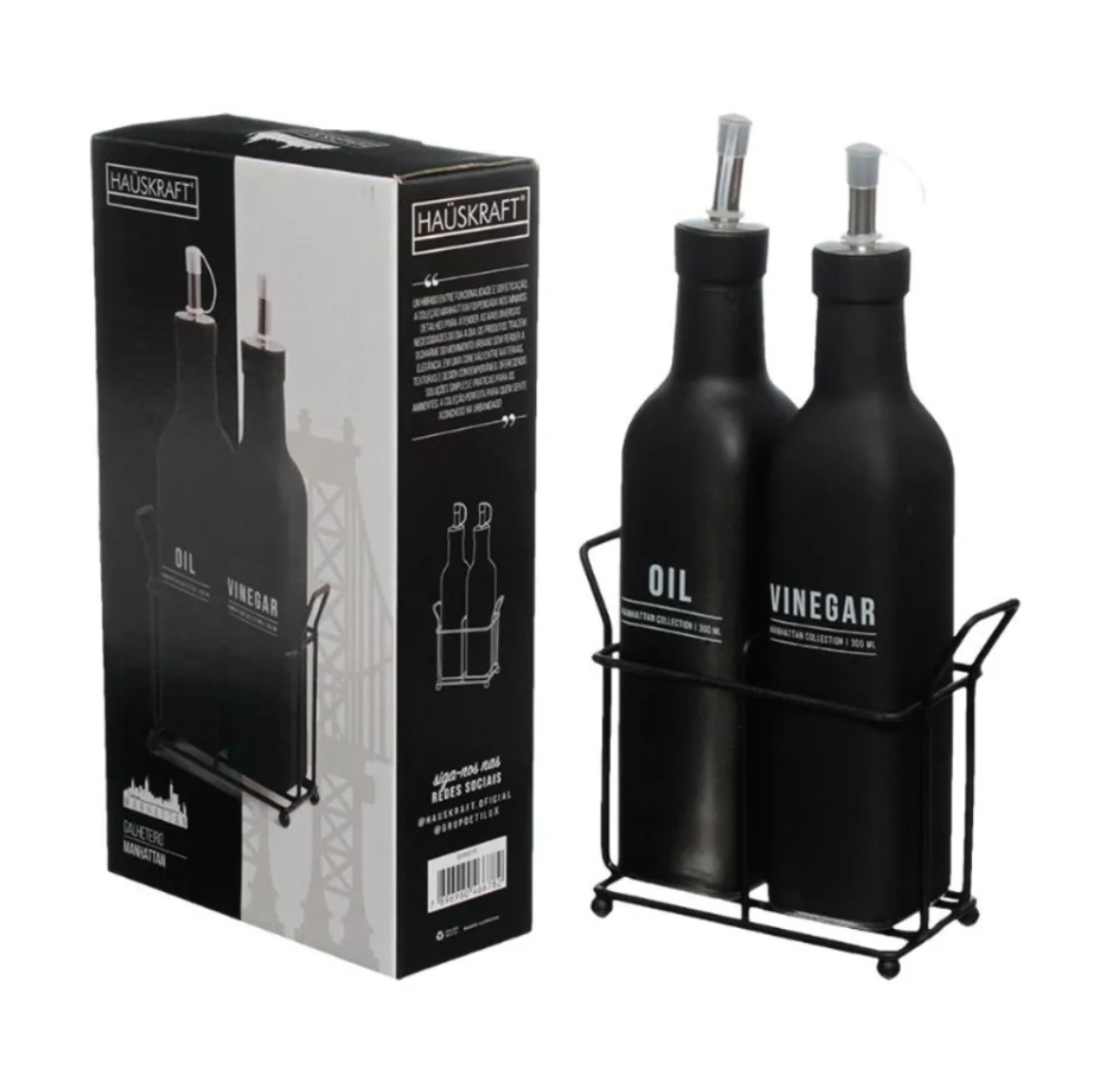 O Galheteiro Preto 275ml – GLHT032/PT Hauskraft é a escolha ideal para quem busca praticidade, organização e elegância na hora de servir temperos à mesa. Com design moderno e acabamento em tom preto sofisticado, ele deixa seu ambiente mais estiloso, além de facilitar o uso de azeites, vinagres e outros líquidos culinários.