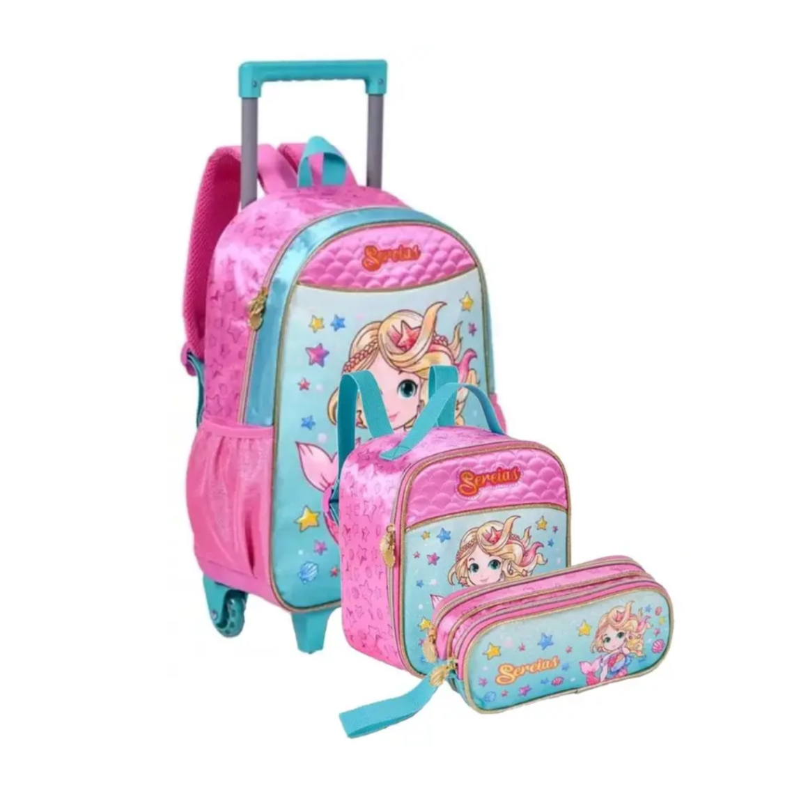 Kit Mochila de Carrinho + Lancheira Térmica + Estojo Duplo Sereia – SR24553K Up Importação e Exportação Ltda