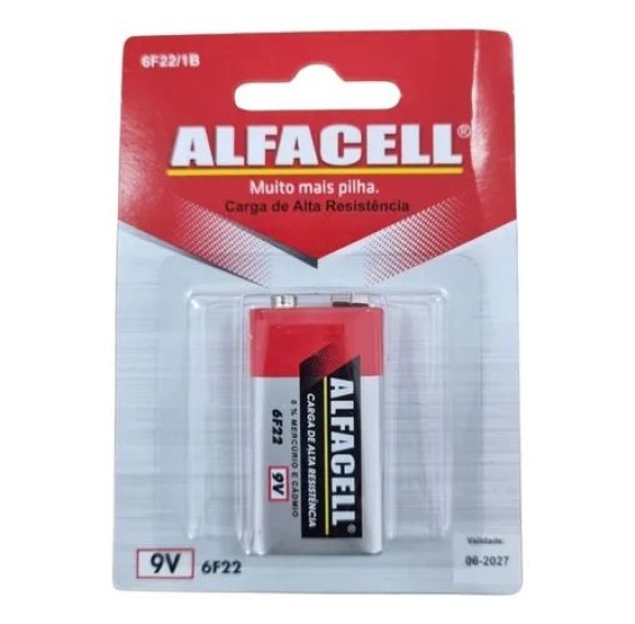 A Bateria Alfacell 6F22/1B é ideal para equipamentos que exigem energia confiável e duradoura. Com tamanho padrão 9V, é indicada para alarmes, microfones sem fio, multímetros, brinquedos eletrônicos e outros dispositivos que necessitam de alta performance. Uma solução prática para uso doméstico e profissional.